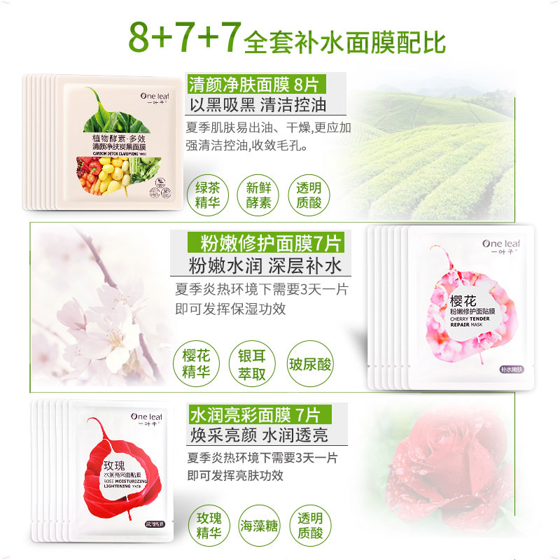 一叶子面膜女补水保湿收缩毛孔控油玻尿酸面膜专柜正品 共28片