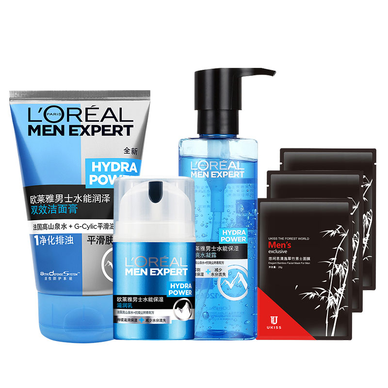 欧莱雅男士水能保湿化妆护肤品套装深层补水滋润洗面奶爽肤水乳液