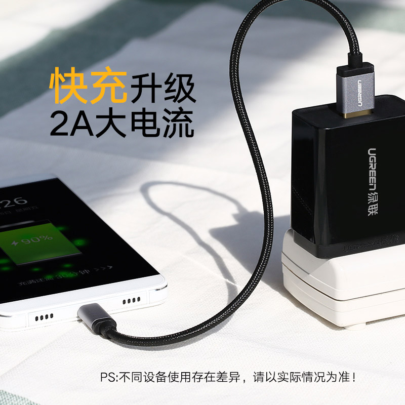 绿联 数据线安卓高速单头加长手机通用华为魅族小米2a快充电器2米 铝合金外壳+纯铜芯,充电快寿命长