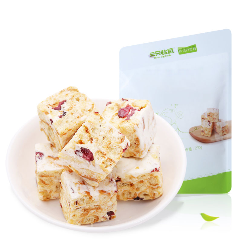 商品名称:软香奶萨萨210g休闲零食牛轧糖沙琪玛蔓越莓味 松鼠新风尚 300款零食 低至3折起