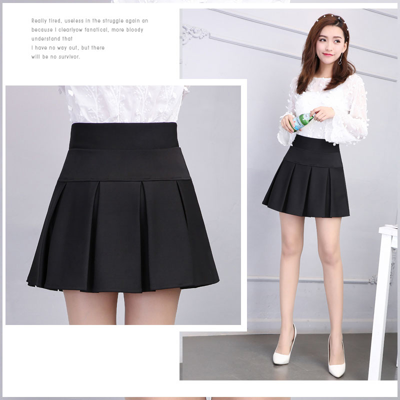 17年春夏新款百搭半身裙蛋糕裙 a字裙 裤裙伞裙大码裙子超短裙女 松紧腰围 带裤边打底衬 涤针织面料